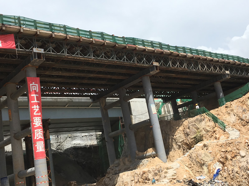 中铁二十三局深圳梅观高速临时改道贝雷片栈桥
